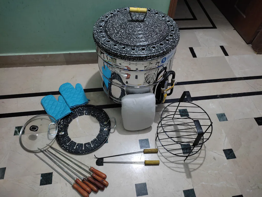 Compact Design: The tandoor is designed to be compact and easy to store, making it perfect for use in small kitchens or outdoor spaces. Its sleek and modern design makes it a great addition to any kitchen or outdoor area.